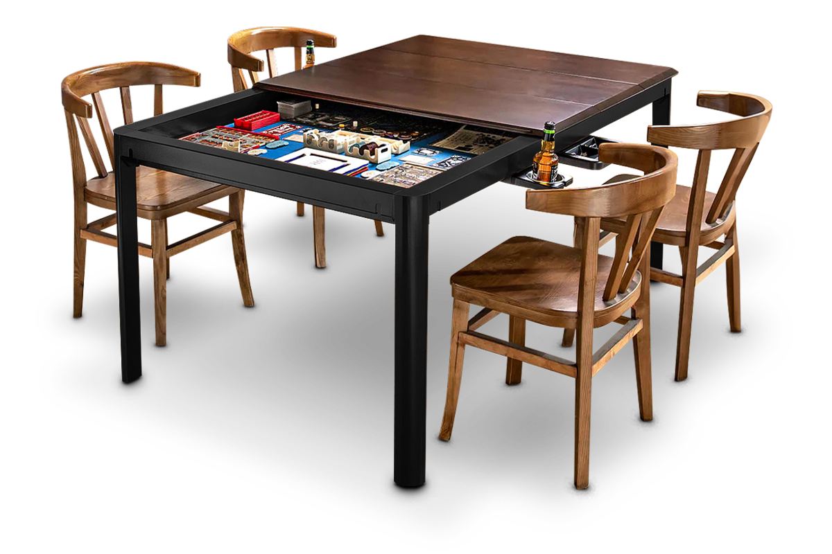 For serious players, table choice affects game flow more than most realise. The Ironside’s footprint handles large boards (Scythe, Wingspan) without overlap, while its recessed play area keeps components in place even during long sessions. Built-in storage means setup and pack-down times are shorter — so you spend more time playing and less time rearranging.