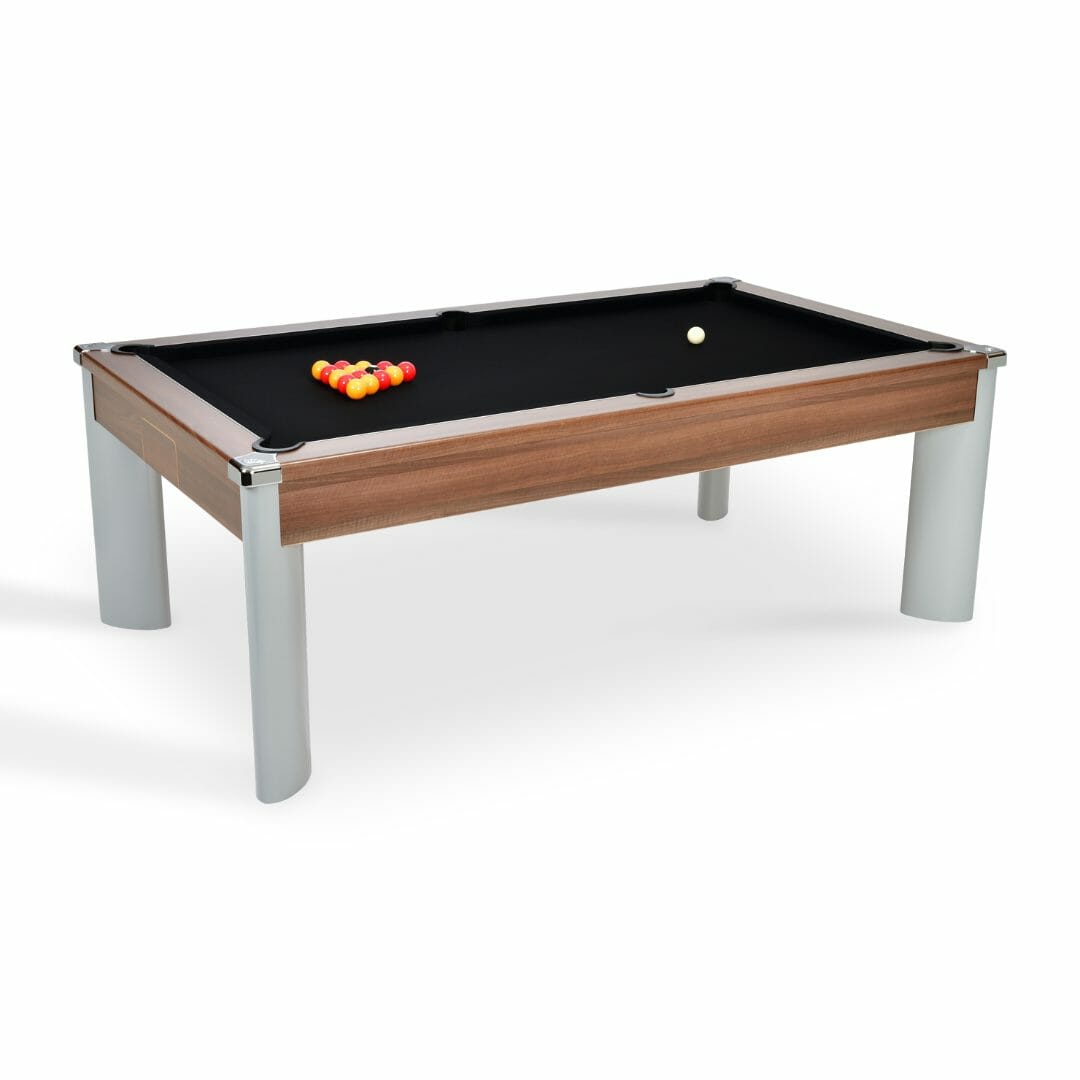 Made in Liverpool, the Essex Dining Pool Table features a unique structure comprising of a laminated 36mm-thick medium-density fibreboard wood table and metal alloy corners with chrome finishing. Not only is the table appealing, but it is also durable for medium-intensity gameplay.