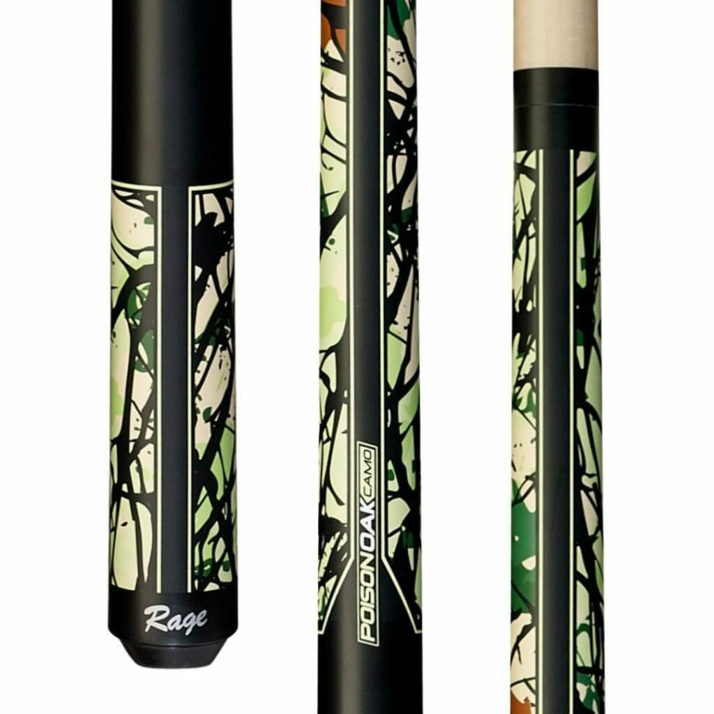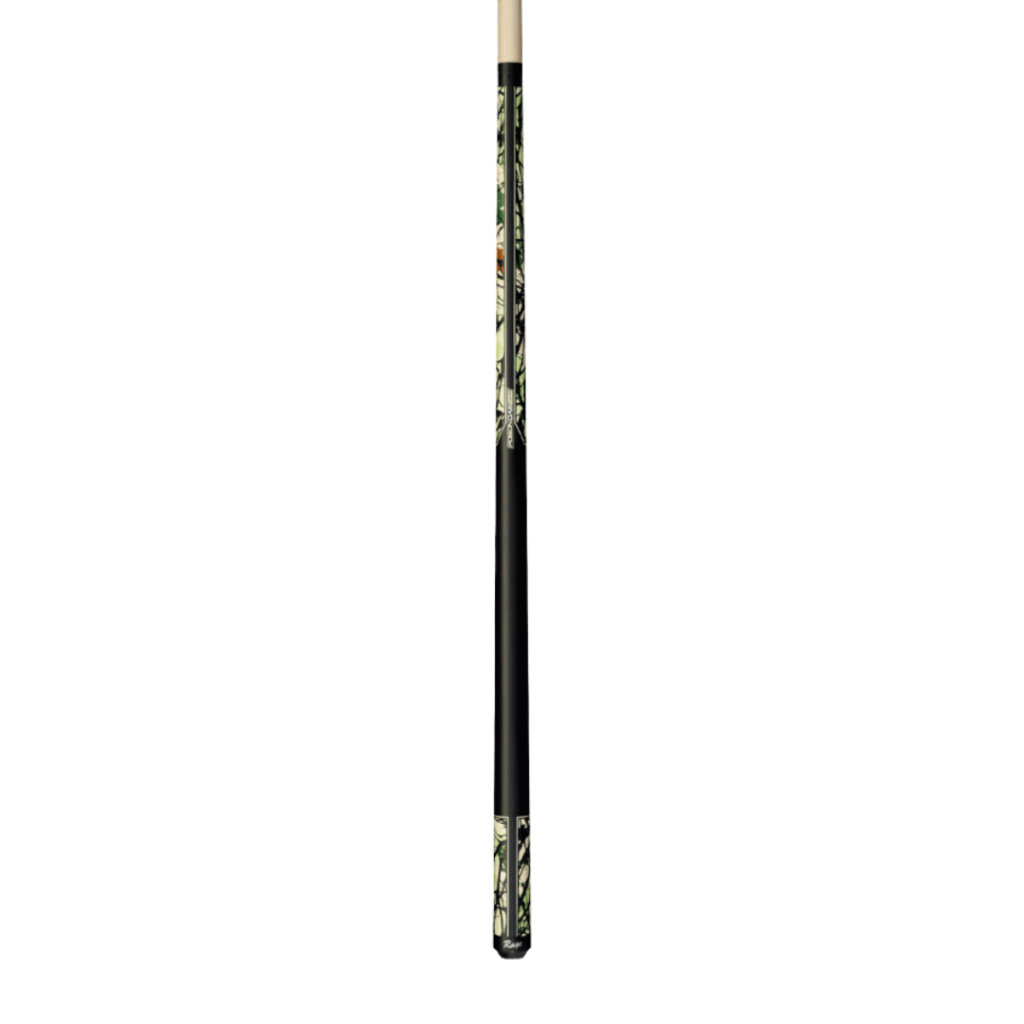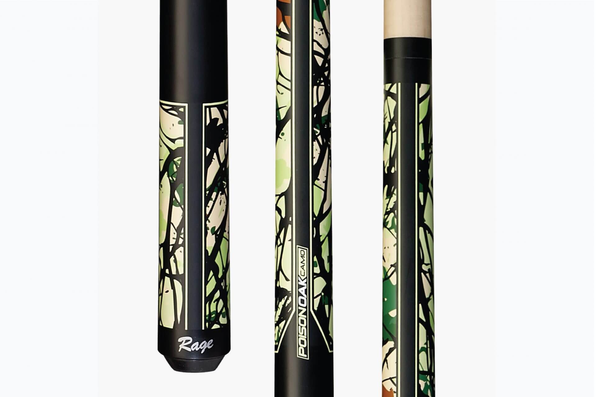The GPO pool cue features a modern Green Poison Oak Camo forearm and butt design. It also has adjustable weights and is wrapless for better slip stroke.