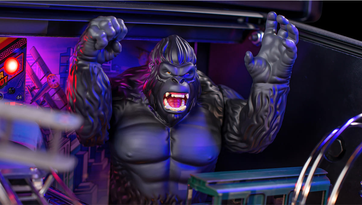 A modern reimagining of the King Kong legend, this four-flipper beast blends cinematic action, animatronic fury, and magnetic traps into one high-impact machine. From the wild jungles of Terror Island to a rooftop biplane chase, every shot pulls you deeper into the legend. A fully animated Kong who reacts to your every move — flipping train cars, swinging arms — a full-sensory tribute to the most iconic monster of all time!