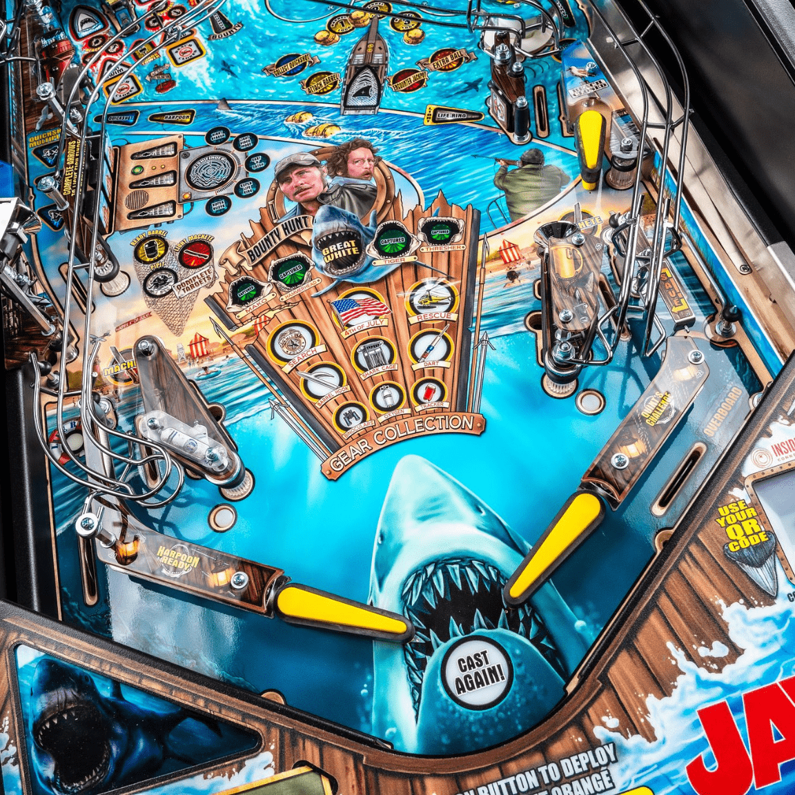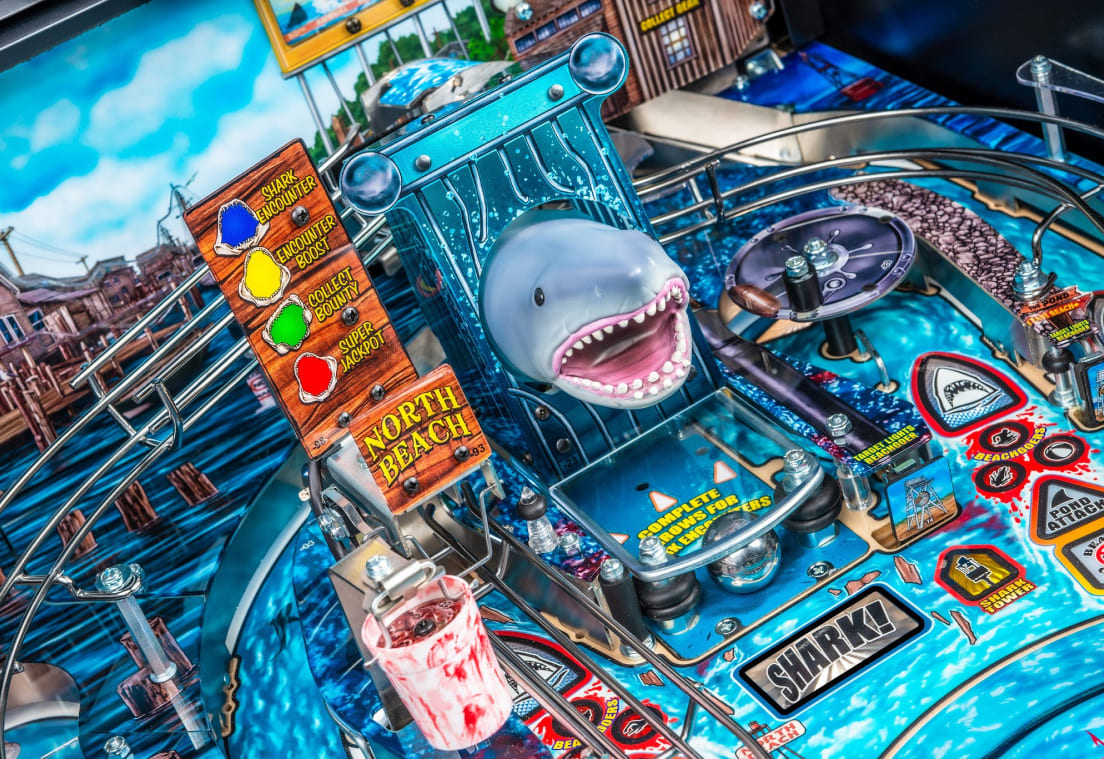 Get yourself fully into the Jaws experience, featuring one of its original stars. Enjoy custom speech by Richard Dreyfuss, known for his role in the original Jaws film, and iconic theme music by John Williams. These elements enhance Stern’s Jaws Pinball, bringing the authenticity and thrill of the classic film directly to your gameplay.