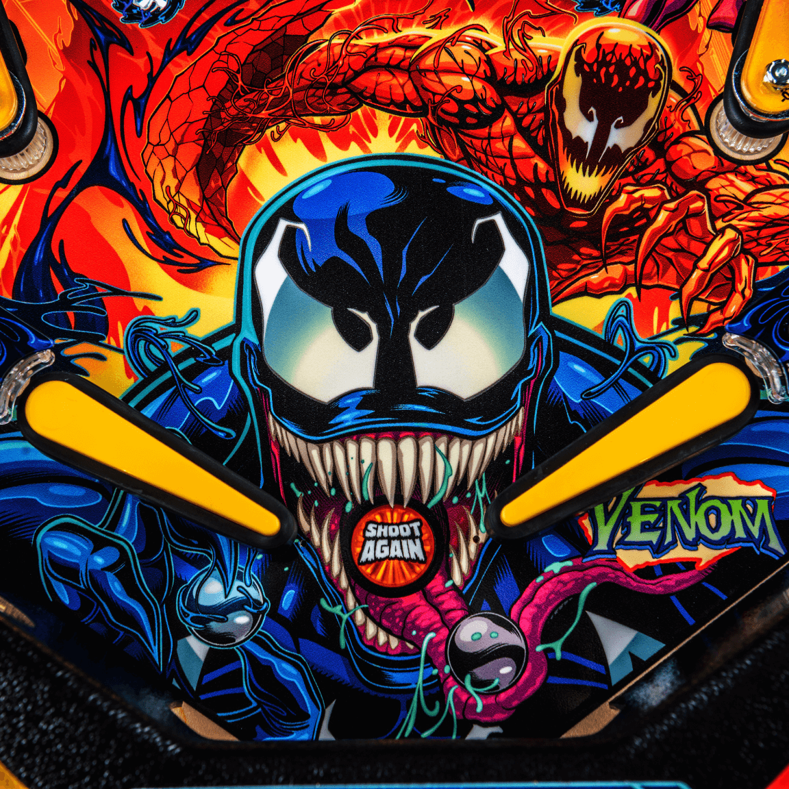 The Venom Pinball machine is the latest in the Stern x Marvel universe designed to bring the thrilling world of Venom to your fingertips. Take on the challenge, embrace the symbiote, and choose your host. The Stern Marvel Venom Pinball Machine is available in Pro and Premium models