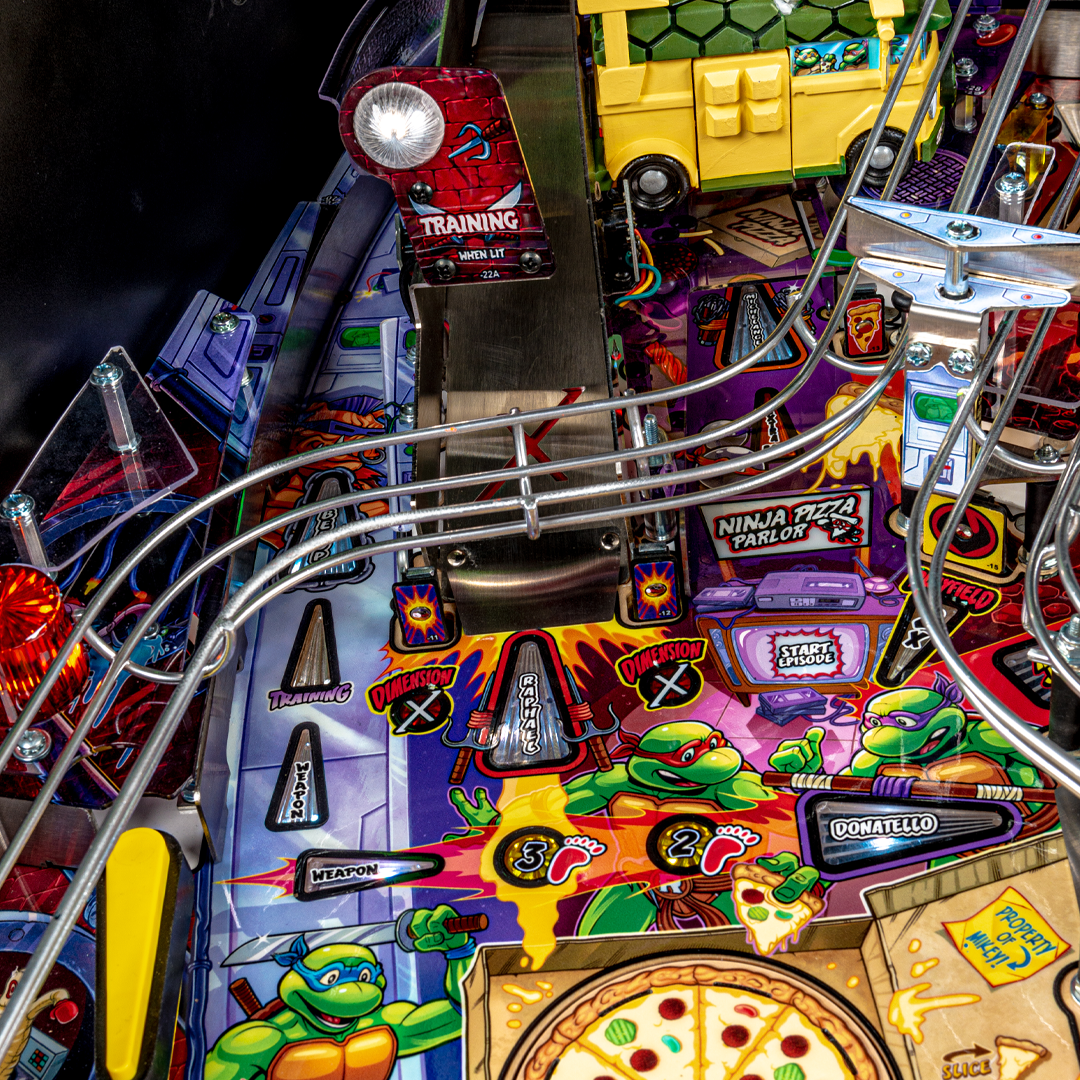 Need a helping hand to beat Shredder? The Premium TMNT Pinball Machine features a custom-sculpted Turtle Van that hides a multi ball secret. Play your way through New York City and unlock the Turtle Van that will release 4 balls – one for each turtle – to decimate the playing field or you can level up your turtles and train your perfect team.