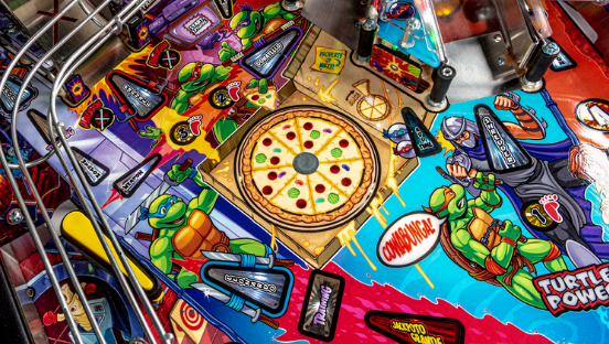 Emphasizing on skill and a little chaos, the spinning pizza feature on the TMNT Pinball Machine adds a surprising twist to the fast-paced pinball using a custom magnet mechanism that can attract more than one ball towards its centre and spin it away in a player-controlled manner. Unlock the exclusive multi ball feature and watch as the spinning pizza propel your hits to enemies all over the playing field. The possibilities are endless.