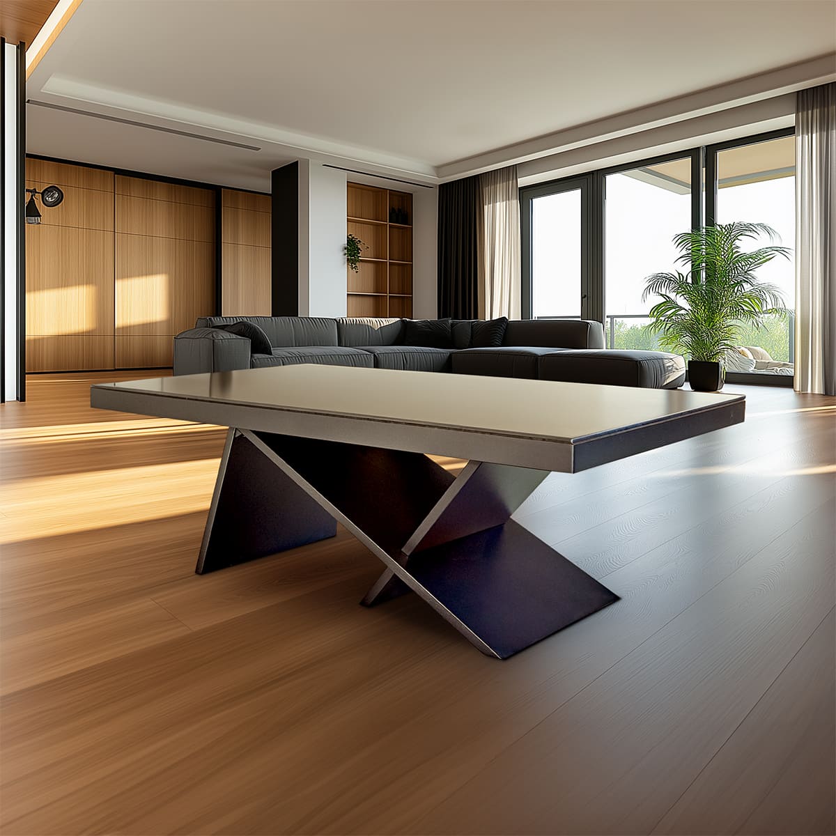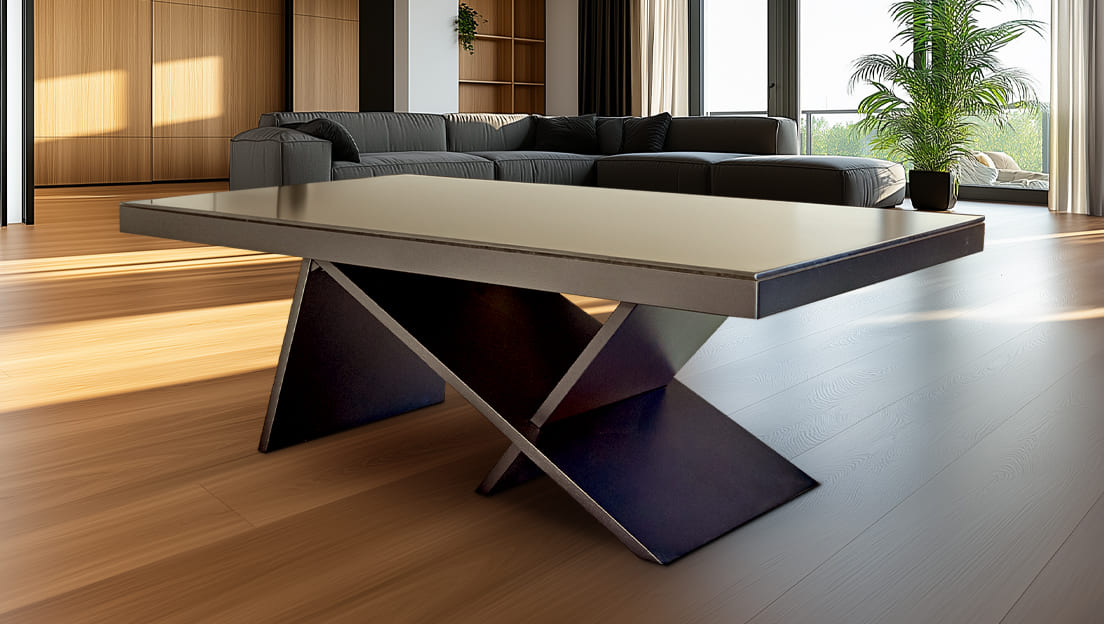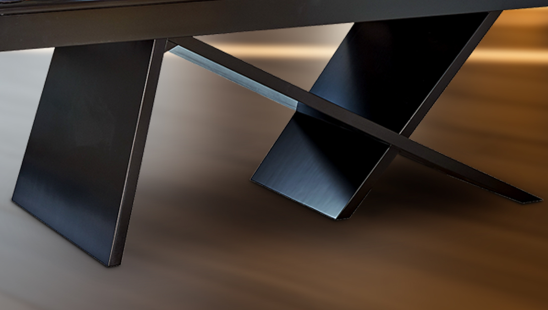 A reinforced European-engineered crossbar structure makes Vision Kyx stronger and more stable than traditional tables while keeping the corners free for a more open, modern look. This innovative design enhances both the table's durability and its aesthetic appeal, making it a standout feature in any room.
