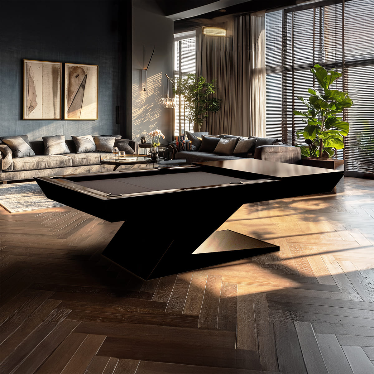 As an optional add-on, you can convert the Zeta into a dining pool table